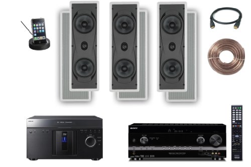 - Speakers = New Natural Sound In-Wall Speaker System with a Quality for Custom Applications / Versatile, Perfect Design for Front and Center Channels - High-Capacity, High-Quality Customized Crossover Network 6-1/2" PP Mica Cone Woofers / Dual 6.5" Kevlar Cone Woofers / 1" Titanium Dome Swivel Tweeter with Tilted Design for Aiming Sound Direction / Gold-Plated Push-Type Speaker Terminals = Connecting = 100 feet of 16 Gauge Speaker Wire Included to Connect Speakers/Receiver - HDMI Cable Included